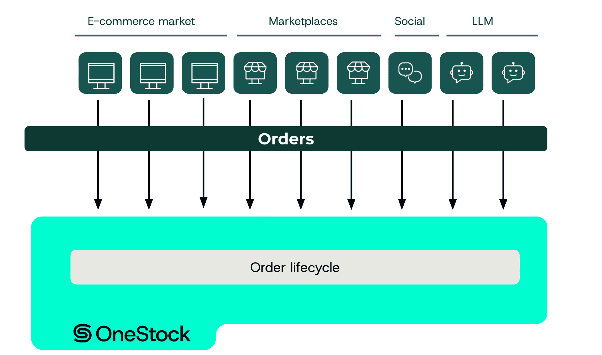 Use OneStock to consolidate orders from all channels – your website, marketplaces, social commerce and wholesale partners – into a single, unified order management system.